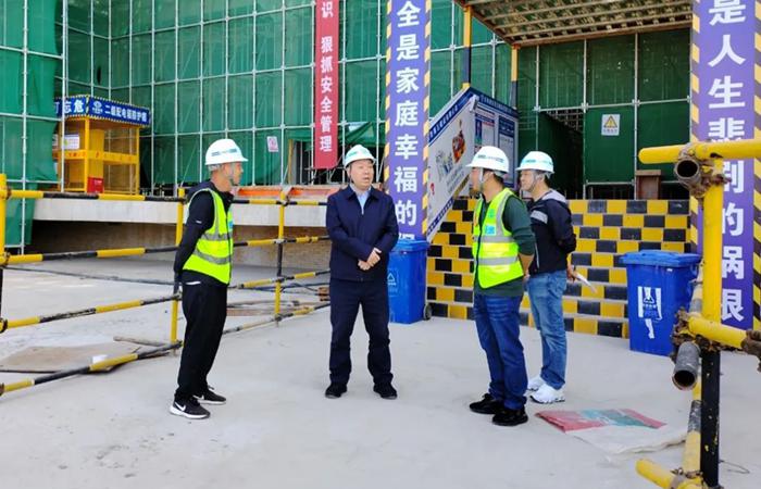 在項目施工現(xiàn)場,陳祖軍與一線管理人員深入交流,詳細(xì)了解項目規(guī)劃、建設(shè)進(jìn)度、成本管控、人員配置、黨的建設(shè)等情況,實地調(diào)研了項目安全生產(chǎn)、質(zhì)量管控、文明施工等工作開展情況,對兩個項目的各項工作進(jìn)展予以充分肯定,并就下一步工作進(jìn)行安排部署。