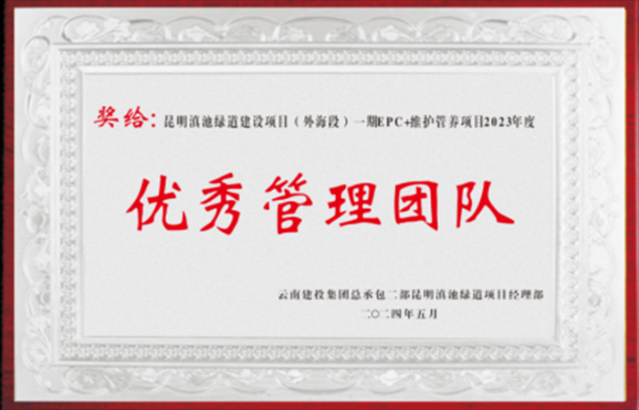 近日,昆明滇池綠道建設(shè)項目指揮部召開2023年度優(yōu)秀個人、優(yōu)秀團體表彰會。昆明滇池綠道建設(shè)項目(外海段)一期EPC+維護管養(yǎng)土建七工區(qū)榮獲“優(yōu)秀管理團隊”榮譽,項目經(jīng)理謝國飛榮獲“優(yōu)秀項目經(jīng)理”稱號,項目資料員劉麗榮獲“優(yōu)秀個人”稱號。