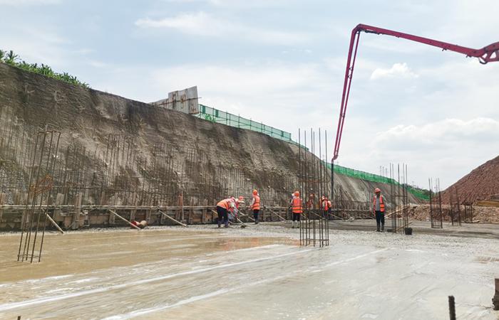 6月20日晚,隨著泵車臂一節(jié)節(jié)地收起,由第十直管項(xiàng)目部負(fù)責(zé)施工的廣南縣教育文化服務(wù)中心建設(shè)項(xiàng)目設(shè)計(jì)、施工總承包(EPC)工程基礎(chǔ)筏板(1-8/A-D軸)順利澆筑完成。