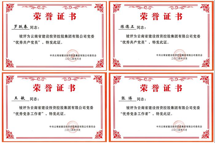 6月30日,云南建投集團黨委召開慶祝中國共產(chǎn)黨成立103周年暨“兩優(yōu)一先”表彰大會。公司2名共產(chǎn)黨員獲評“優(yōu)秀共產(chǎn)黨員”榮譽稱號,2名黨務工作者獲評“優(yōu)秀黨務工作者”榮譽稱號。