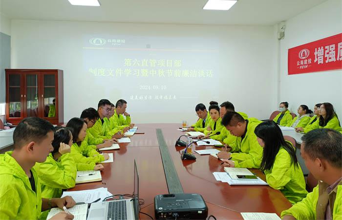 9月10日,第六直管項目部在直管部開展中秋節(jié)前廉潔談話。直管部班子成員、二線及各項目全體管理人員參加,國外項目人員采用“數(shù)字建投”線上直播方式參加。