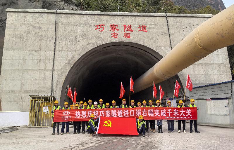 12月21日,路橋二部魯巧高速項目6-4工點巧家隧道進口繼12月10日左幅掘進破千之后,右幅也順利突破千米大關(guān)。