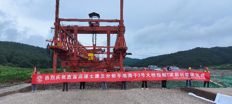 6月27日,由公司市政路橋一部負(fù)責(zé)施工的宣富高速公路項(xiàng)目土建五分部平地海子3號大橋T梁順利架設(shè)完成。